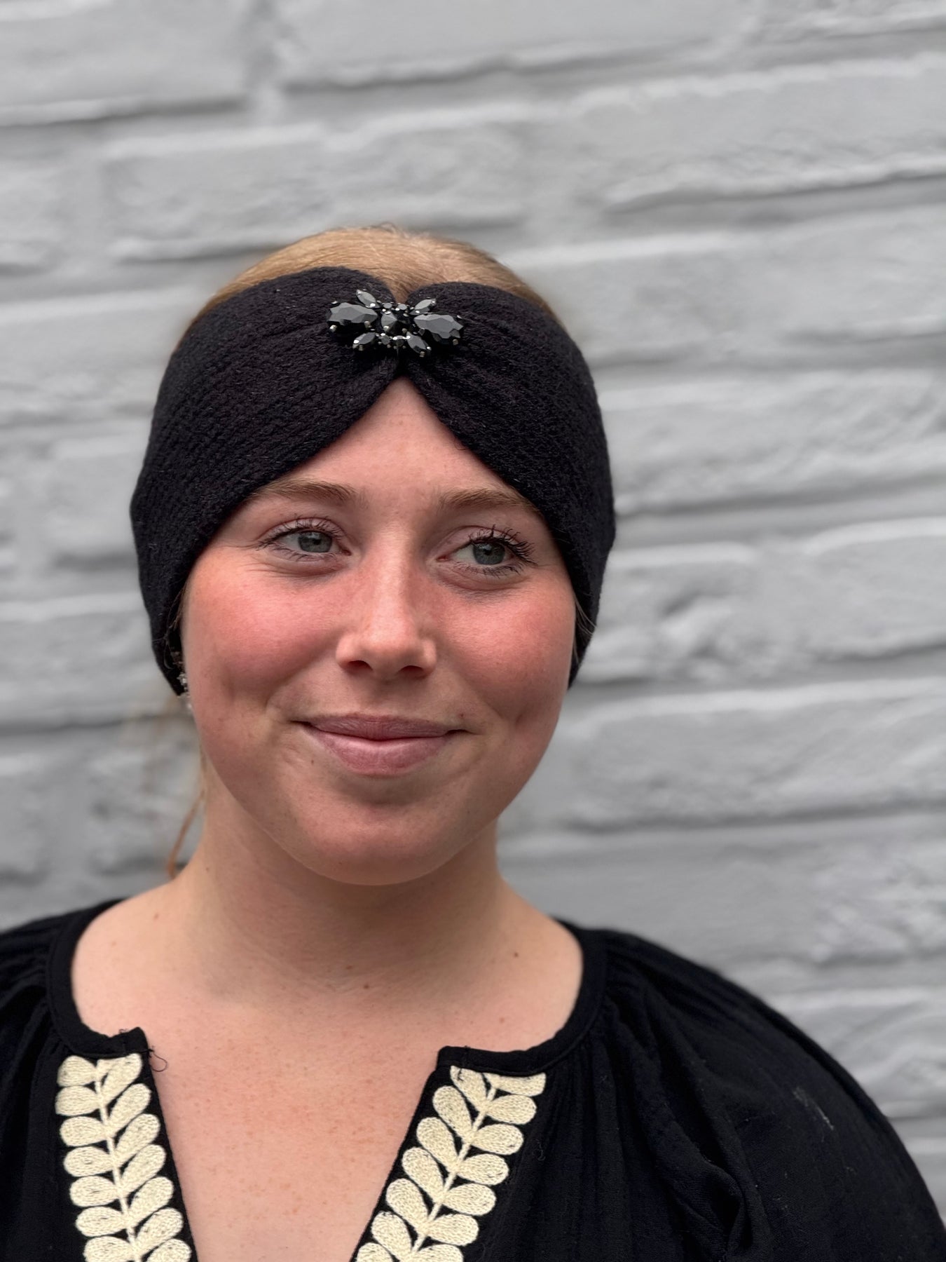 Apportez une touche d’élégance à vos tenues hivernales avec ce bandeau tricoté orné d’un joli bijou scintillant à l’avant.